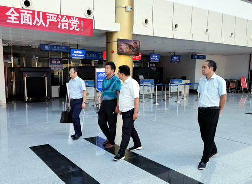 随后,在九江庐山机场负责人陈卫清的陪同下,陈春生一行对机场候机楼、办公区等进行了实地考察。
