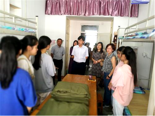 9月4日上午,副校长查振华在外国语学院院长韩琨、党委书记罗其娟、副书记彭晓等同志的陪同下深入外国语学院学生宿舍看望新生。