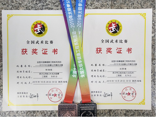 10月30日,由国家体育总局武术运动管理中心主办的2019年全国太极拳公开赛总决赛在陕西省宝鸡市落下帷幕,我校两名学生在比赛中表现优秀,分别荣获了二等奖和三等奖。