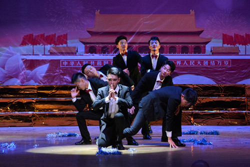 政法和机材学院共同带来一首大合唱《国家》,同学们挥舞着手中的国旗歌唱祖国,伴着观众热烈的掌声与澎湃的激情,晚会圆满落幕。