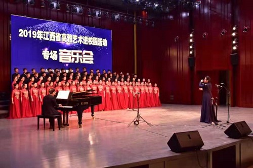 本次演出是省教育厅主办的2019年江西省高雅艺术进校园系列活动之一,江西应用科技学院青云合唱团的倾情演出也淋漓尽致的展现出了音乐的“多样化”和“创新化”的风格特征,一首首耳熟能详的红歌通过混声合唱、男声合唱、男高音独唱、男中音独唱、女高音独唱等不同形式唱响,深深赢得了我校师生的热烈掌声和喝彩。