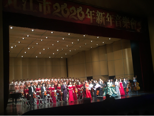 12月29日晚,由九江市委、市人民政府主办,九江学院承办,九江交响乐团演奏的九江市2020年新年音乐会在九江市文化艺术中心举行。市委副书记熊永强,市政协主席杨小华等市四套班子领导,学校党委书记赵伟,党委副书记魏立平和市有关单位负责同志、社会各界代表、我校师生共同聆听了音乐会。