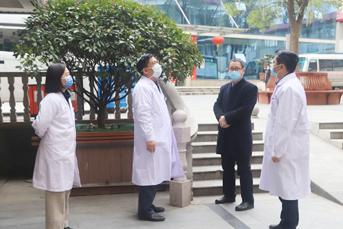 在附属医院党委书记张南华、纪委书记刘英明的陪同下,刘校长前往医院门、急诊体温检测点等处,检查新型冠状病毒肺炎疫情防控工作,了解疫情防控措施、医疗物资储备、应急处置等工作落实情况。他指出,近日就诊人数增加,人员往来密集、流动频繁,要更加密切关注重点人群;减少出入口,增加体温检测人力,并对进出医院的人员做好登记,做到第一时间甄别发热病人。
