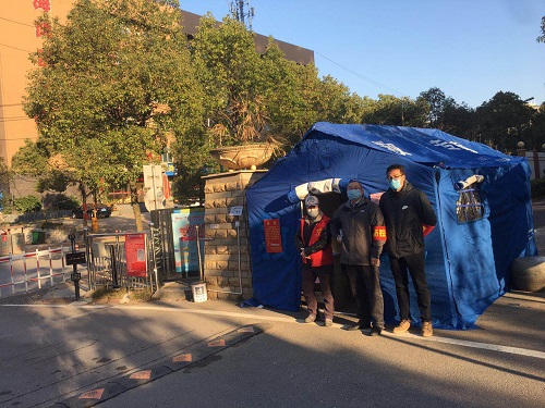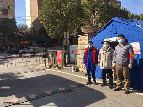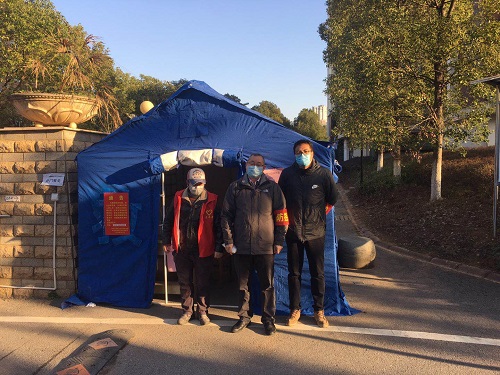 2月18日,副校长陈小林来到学校匡庐苑卡口,慰问社区工作人员。随后,他作为志愿者加入到社区管控人员流动的工作中。