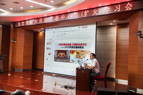 会议指出,刚刚闭幕的全国两会是一次特殊的两会,是在以习近平同志为核心的党中央坚强领导下,全国人民上下一心、众志成城,我国疫情防控阻击战取得重大战略成果下召开的一次重要会议。5月29日,省委召开领导干部会议,传达学习全国两会精神,刘奇书记对贯彻落实全国“两会”精神提出了明确要求。我们要按照省委部署要求,把学习贯彻全国两会精神尤其是习近平总书记重要讲话精神作为当前一项重大政治任务,组织党员干部和师生认真学习、领会精神、抓好贯彻落实,坚决把中央和省委的要求转化为自觉行动,奋力夺取疫情防控和学校事业发展双胜利。