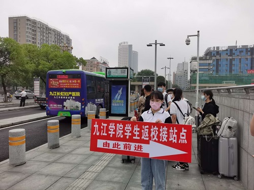 绵绵细雨阻挡不了同学们返校复学报到的热情,从各地返校的同学们或由亲友自驾、或乘坐九江学院学生返校公交专线陆续进入学校西大门复学报到专用通道,根据标识牌,在工作人员的引领下,按照间隔线,保持安全距离,排队安全有序地完成体温检测、个人身份核对、健康码查验、扫码报到登记等复学报到程序。当同学们进入校园后,即可乘坐校车回到宿舍。