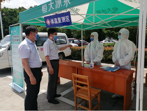 杨耀防看望了西门体温复测点和临时观察点的医护人员,向医务人员详细了解疫情防控工作开展情况,仔细询问工作流程、休息就餐、个人防护等情况,对医务人员坚守岗位、担当作为的敬业精神和奉献精神给予充分肯定,并叮嘱医务人员在全力做好疫情防控工作的同时注重自我防护,确保自身安全。