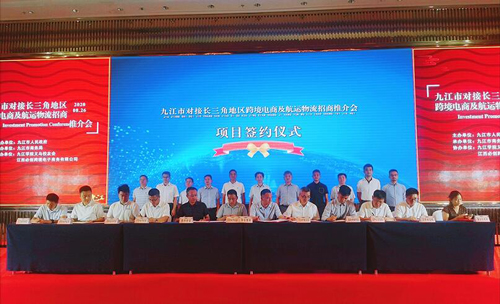 九江,是众水汇集之地;义乌,是商品汇集之地。当前,九江市正围绕石油化工、纺织服装、电子信息、新材料、绿色食品、钢铁有色、装备制造、航运物流、文化旅游、数字经济等十大重点产业,建立了产业链“链长制”,着力打造十大千亿产业集群,努力形成“万亿临港经济带”。此次会议围绕九江市十大重点产业链,旨在帮助企业打通供应链、市场链,加入“买全球、卖全球”的国际市场,提升九江产品的市场份额,扩大九江制造的品牌影响力。会议现场,举行了项目签约仪式,共有10个招商项目在现场签约。