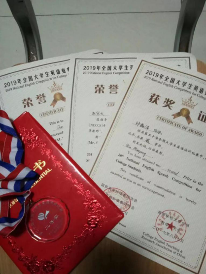 除了课本学习以外,邱淼洋还积极参加比赛,并在各项比赛中脱颖而出:荣获2018年全国大学生英语竞赛初赛一等奖、2018年江西省第十届大学生翻译大赛一等奖、2018年江西省“赣江杯”大学生英语竞赛二等奖、演讲比赛二等奖等多个奖项。这些不仅是一次次比赛,更是学习的扩充,是人生的阅历,是难以忘怀的独特记忆。