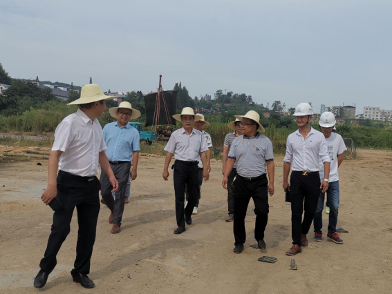 在项目建设指挥部指挥长张南华,副指挥长曹钟安、李晓华及指挥部其他工作人员的陪同下,杨耀防来到项目建设工地,察看了工地现场及地勘工作情况,并就开工仪式的工作安排及现场布置等与指挥部人员进行了详细的讨论。