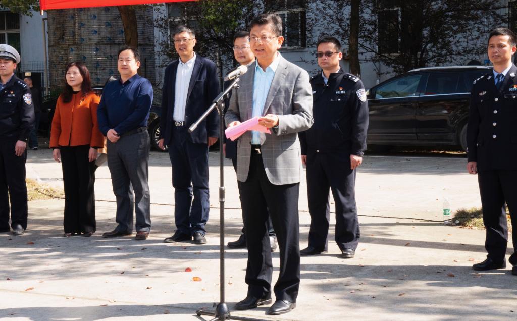 刘晓东在动员讲话中首先代表学校向出席本次活动的各位嘉宾表示欢迎和感谢,并希望他们一如既往地支持学校的平安建设。