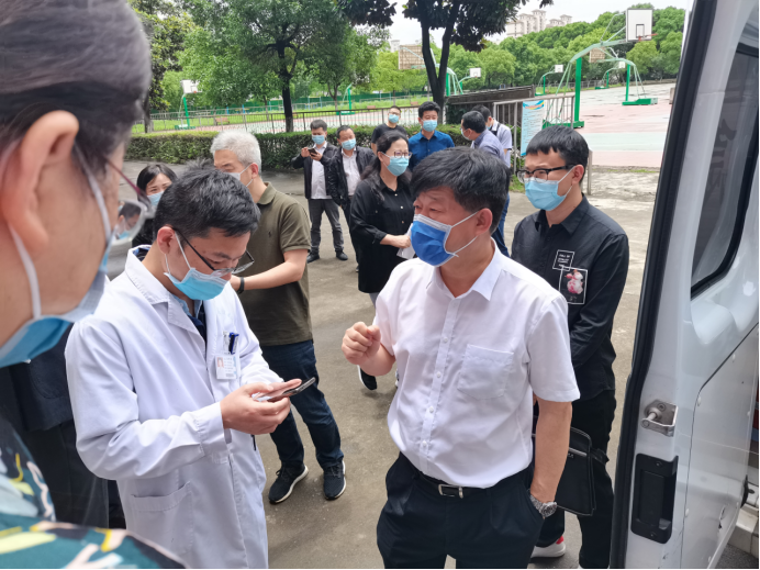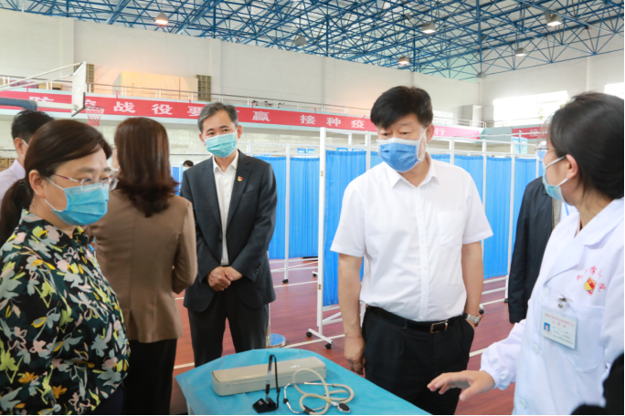 5月22日中午,国家卫健委职业卫生中心副主任徐克明率国务院联防联控机制江西工作组一行4人来我校检查指导新冠病毒疫苗接种工作。省卫健委党组成员、副主任钭方芳,省卫健委血地处处长谢建文,省第二指导组组长、省交通运输厅二级巡视员彭瑜,副组长、省卫健委规划发展与信息化处二级调研员陈华新,九江市政府副市长李军,市政府副秘书长黄效兵,市卫健委主任周泽甫,市卫健委副主任孙勇军等陪同检查。我校党委书记赵伟,副校长杨耀防热情接待了工作组一行。