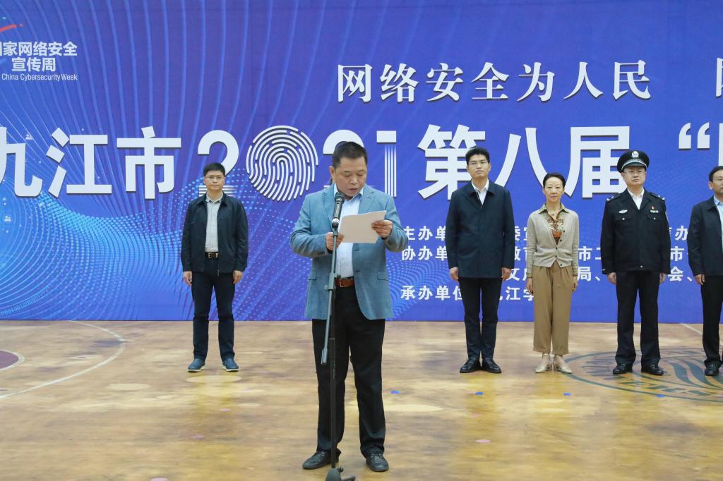 10月11日至10月17日,是我国第八个网络安全宣传周。为进一步增强全市网民的网络安全意识,营造网络安全人人有责、人人参与的良好氛围,10月11日上午9:30,九江市第八届“国家网络安全宣传周”启动仪式在我校北区田径馆举行。我校副校长王万山出席仪式并致辞,市委网信中心副主任尹仁平主持启动仪式。我校党委委员、宣传部长冯健,市委宣传部互联网信息办专职副主任欧阳小竹,九江市公安局、教育局、国安局二级调研员夏卫、工信局、总工会、团市委、妇联、人行九江中心支行、文广新旅局、九江新闻网等有关单位相关负责人和代表300人参加了启动仪式。