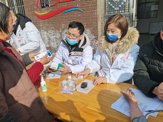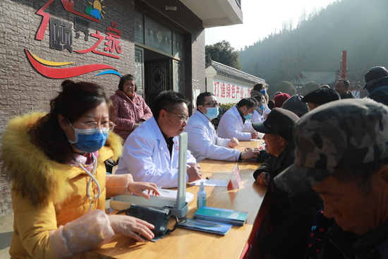 当日上午,在“送医、送药、送健康”活动中,我校附属医院和校医院组织了呼吸科、心血管科、内分泌科、全科医学科、骨伤科、体检科等科室的专家和医务人员,为双新村村民开展了义诊活动,受到了当地村民的欢迎。在义诊现场,前来就诊和咨询的村民络绎不绝,医务人员为村民进行了常见疾病的诊疗、体检等,现场还给村民免费发放了药品,并开展了健康知识的普及。