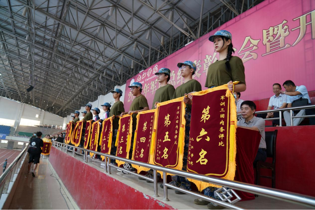 9月30日上午,我校在主校区体育训练中心召开2022年新生军训总结表彰大会暨开学典礼。校党委书记赵伟出席大会,并代表学校向武警九江支队赠送锦旗。校长陈小林致辞,勉励2022级新同学在最美的时光奋斗出最闪亮的青春,成就最美好的自己。