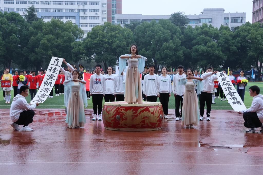 在运动员代表、裁判员代表宣誓后,校党委书记赵伟宣布:九江学院第二十一届运动会开幕!