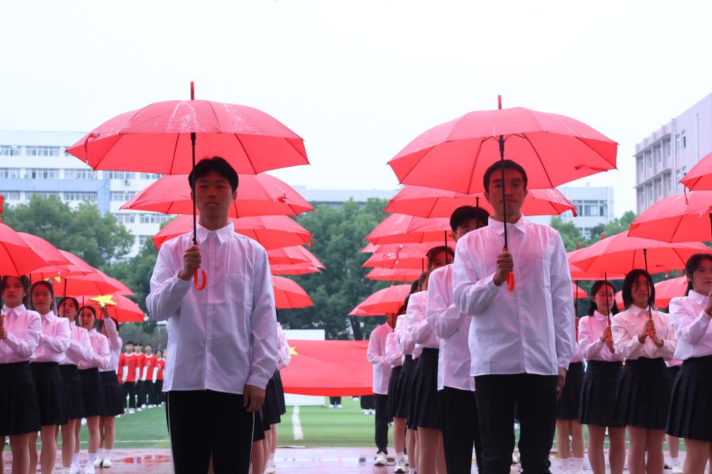 入场仪式结束后,国旗班的同学们迈着矫健整齐的步伐走向升旗台。庄严的国歌声响起,在全体师生的注目礼下,五星红旗冉冉升起,飘扬在学校的上空。