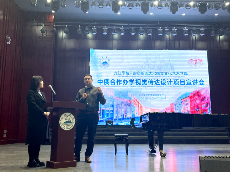 2020年,经教育部批准,我校与俄罗斯克拉斯诺达尔国立文化艺术学院举办合作办学项目。三年来,双方友好合作,积极推进项目建设。克拉斯诺达尔国立文化艺术学院代表团此次来访,旨在与我校就双方合作的发展方向、合作细节等进行商讨,如选派优秀的俄罗斯教师来九江学院授课,为首批赴俄学习的项目学生提供必要的服务和帮助等。商谈中,两校还就开展联合培养硕士项目、中俄师生交换项目、艺术作品交换展览等拓展项目合作进行了深入交流。