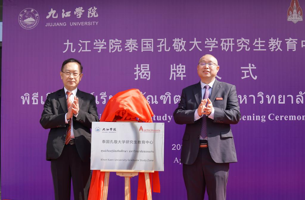 4月7日上午,九江学院泰国孔敬大学研究生教育中心揭牌仪式在我校紫薇园举行,泰国孔敬大学代表团,校长陈小林,学校相关部门和二级学院负责人及部分师生代表参加了此次揭牌仪式,仪式由王万山主持。