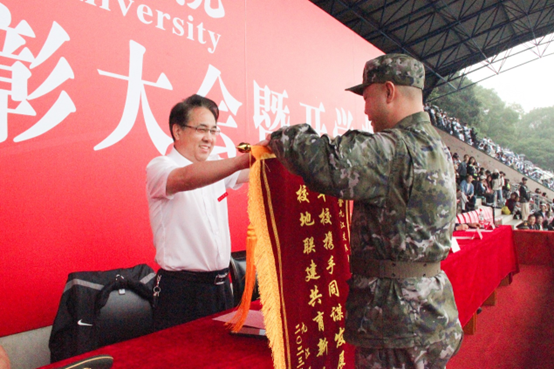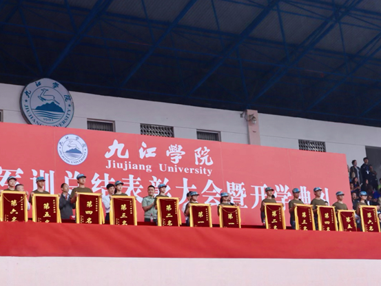 9月23日上午, 九江学院2023年新生军训总结表彰大会暨开学典礼在学校丹枫园南区运动场隆重举行。校党委书记李明斌出席大会,并代表学校向武警九江支队赠送锦旗。校长陈小林致辞,勉励2023级新同学勇担历史重任,锚定奋斗目标,淬炼专注品格。