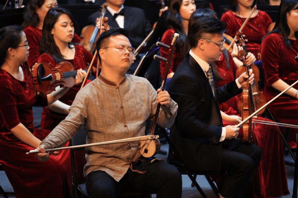 音乐会在开场曲《我的祖国》的演奏中拉开序幕,表达对祖国的热爱,雄浑磅礴的气势、激昂厚重的旋律、壮阔高远的意境,带给现场观众震撼人心的力量。《追寻》表达了老一辈无产阶级革命家用他们一生的信仰去追寻心中渴望新中国的蓝图;《乱弹琴声》以板胡协奏曲的形式呈现山西音乐元素,具有极鲜明的艺术特色;《第二圆舞曲》极富感染力和亲和力,深受现场观众喜爱;《云想花想》展现了如诉如泣、娓娓道来的深切情思;《九江组曲》运用交响音乐特有的力度、广度、锐度与温度,体现出“再创九江辉煌,再现九派荣光”的奋斗精神;《不忘初心》道尽对祖国和人民的浓浓深情......