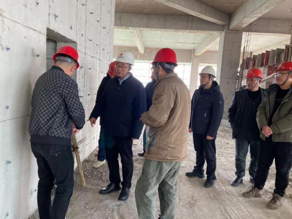 陈小林登上已封顶的大楼,与施工单位、监理单位现场负责人亲切交谈,询问项目的安全措施、进度、质量等情况,了解项目建设过程中遇到的困难。