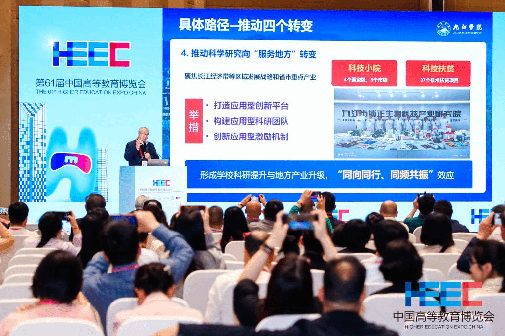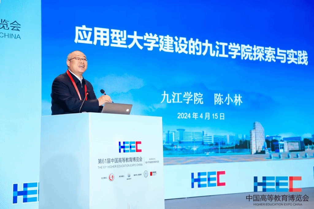 4月15日,由中国高等教育学会主办,福建省教育厅、福州市人民政府、厦门大学等联合承办的第61届中国高等教育博览会在福建省福州市开幕。我校校长陈小林应邀出席,并在地方大学高质量发展学术活动中,作了题为《应用型大学建设的九江学院探索与实践》的专题报告。