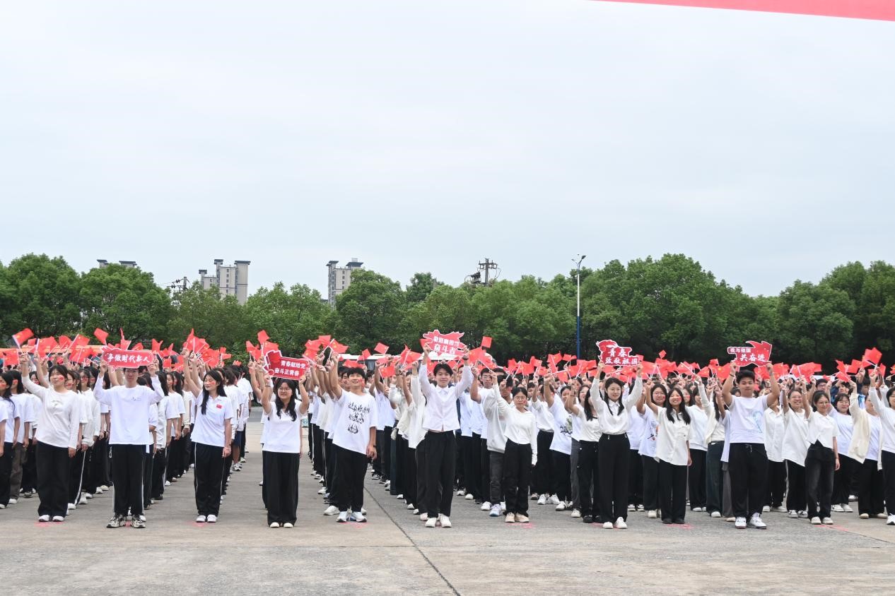 “我们将不负韶华,不负时代,不负人民,为实现中华民族伟大复兴的中国梦而努力奋斗,筑梦新时代,青春勇担当!”九院学子们激昂的青春誓言响彻校园。随后,来自医学院周亚文和杨淑婷表演诗朗诵《今天是你的生日,我的中国》,现场全体师生挥舞着手中的国旗,满怀自豪和喜悦齐唱歌曲《歌唱祖国》,用最嘹亮的歌声表达对祖国的美好祝愿。