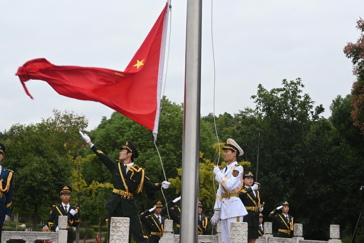 查振华在讲话中表示,五星红旗在我们眼前冉冉升起,它不仅见证了新中国从“站起来、富起来到强起来”的伟大飞跃,也激励着九院师生不忘初心,砥砺前行。在这个喜庆而又庄严的时刻,全校师生和亿万中华儿女同为新时代伟大祖国的发展感到无比自豪,也为我校胜利召开第二次党代会,改革发展迈上新征程而深受鼓舞。