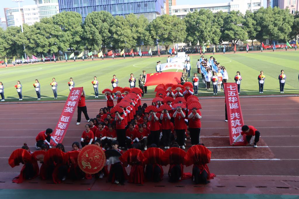 随着激昂的运动员进行曲响起,国旗护卫队、鲜花方队、彩旗方队、裁判员方队、各二级学院方队以及职工方队依次入场。整齐的步伐、嘹亮的口号彰显了九江学院师生蓬勃向上的精神风貌。尤其是各二级学院方队的表演,创意十足、活力四射,充分展示了学院特色和文化,赢得了全场观众的热烈掌声和喝彩。