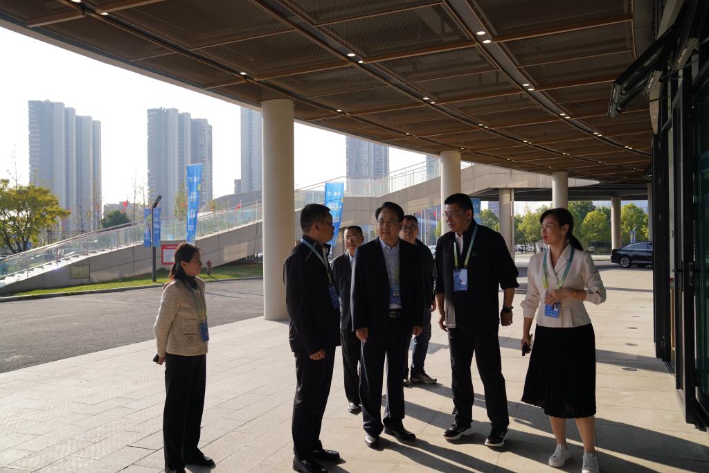 在与志愿者交流时,李明斌询问了他们在服务过程中的感受与收获。外国语学院英语专业A2213班戴英格同学激动地说:“能参与国际赛事的志愿服务,我感到非常荣幸,不仅学到了专业知识,还提升了沟通和协作能力。”