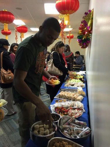 美国当地时间2015年2月18日晚,正值中国年味浓浓的大年三十,萨凡纳州立大学孔子学院师生80余人在精心布置充满喜庆的孔子学院教室欢聚一堂,共庆中国的传统节日——春节!