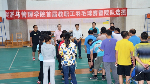 为进一步丰富教职工业余生活,增进彼此之间情感交流,5月16日,经济与管理学院首届教职工羽毛球赛暨院队选拔赛在主校区北区田径馆激情开赛。本次比赛共吸引了40多名教职工热情参与,院领导班子全体成员参与了此次活动。活动策划及组织由院分工会具体承办。
