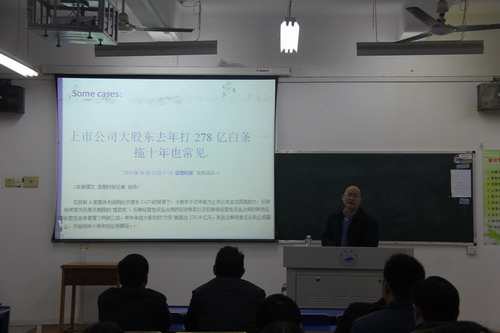 11月27日下午,华中科技大学管理学院刘启亮教授来到会计学院做了题为“内部控制对企业腐败的影响——来自中国的证据”的学术讲座。会计学院副院长蔡报纯、张国伟及学院博士、青年教师参加了讲座。讲座由副院长蔡报纯主持。