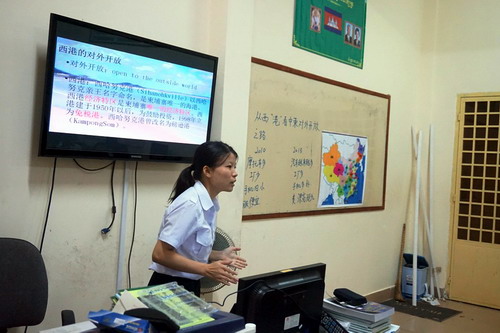 12月9日,孔子学院西港高中汉语中心主办了“从西‘港’看中柬对外开放之路”文化讲座。九江学院选派的汉语教师志愿者龙水香介绍了以深圳为代表的中国5个经济特区和以大连为代表的14个港口城市的情况。