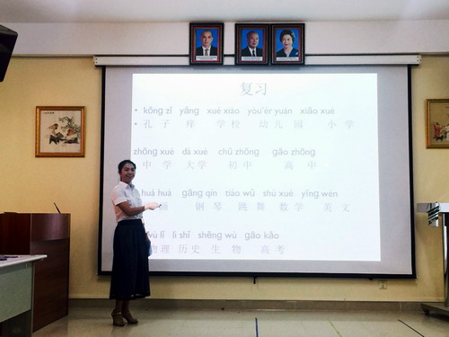 本次“中国教育”文化讲座让学生们对中国教育有了基本的了解,学生们知道了中国的学生是如何求学的,为想去中国留学的朋友打开了一扇窗户,明晰学习汉语的目标。按照中方院长帅式毅的要求,本次文化讲座特别安排了汉语学习的环节,在听讲座的同时,学生们学到了中国教育的常用词汇,有效地提升了文化讲座的效应。