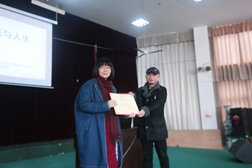 鉴于郭倩倩女士的艺术成就和影响,讲座正式开始前,艺术学院副院长虞斌代表学院为其颁发艺术学院“客座教授”聘书。