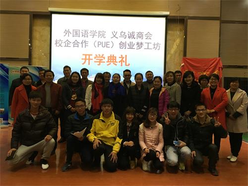经过前期缜密筹备,我校外国语学院校企合作平台实现了与义乌城商会——创业梦工坊的首次合作,并于3月21日晚在香远楼3楼报告厅举行开课仪式。