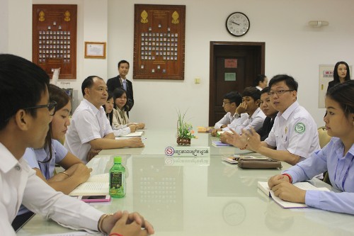 帅式毅院长在交流时建议,青年人要多读书、好读书、读好书;30多年前,中国改革开放初期,个人GDP要低于柬埔寨,但再穷也要读书,我个人认为中国的家庭是在全球做得较好的。柬埔寨现在是年轻人的国家,充满朝气,而且我所见到的年轻人都爱学习,你们是国家的未来,读书是最好的发展途径。现在是网络时代,手机用得多,但真正的读书应该是在图书馆,欢迎你们到中文图书馆来看书,我也会努力争取为大家找来更多的好书;希望大家不仅多读书,还要多交换思想,就象今天谢勒尼勒阁下和大家交流这样。
