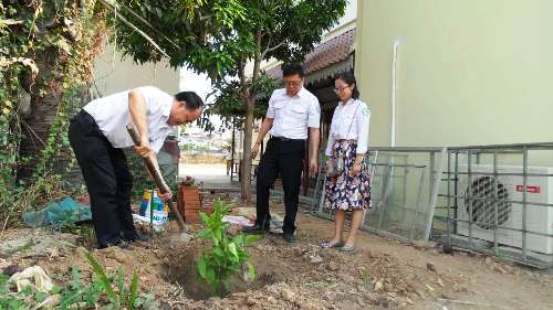 4月7、8日下午,孔子学院举行了扫尘和植活动,谢莫尼勒阁下向大家详细介绍了柬中两国的扫尘和植树的文化,这都是典型的柬新年习俗;谢莫尼勒阁下和中方院长帅式毅先生在孔子学院共同种下了“友谊之树”,希望在孔子学院10周年之际能共同采摘果实,孔子学院的植树活动也会延续,来访的中柬两国嘉宾会陆续在孔子学院大楼旁共植“友谊之林”。