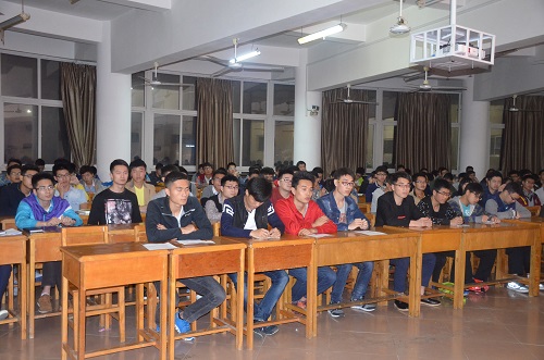 在随后召开的考研经验交流会上,机材学院2016年考取研究生的六名同学一一上台,与同学们分享了自己的考研经历和心得体会。A1241班李铭锋同学结合自己的学习经历,从以下四个方面与同学们分享了经验:一是选择学校要实际;二是根据自身情况,调整复习进度;三是处理好人际关系,营造一个良好的学习氛围;四是及时调整心态,做好打持久战的准备。而A1233班的徐勇同学则分享了高数、英语等科目的具体学习方法,为同学们提供了借鉴。此外,其余的同学也安利了一些论坛和考研小诀窍,希望对同学们的备考起到积极的作用。
