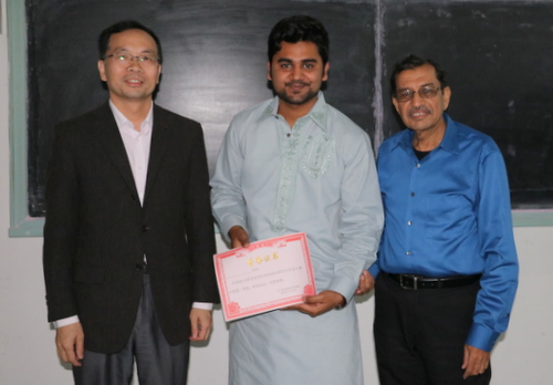 本次汉语比赛吸引了各个年级的留学生参赛,进入比赛的十一名同学都围绕着演讲主题“我和中国”做了充足的准备。比赛中,选手们娴熟的汉语技巧和幽默风趣的表达赢得了台下观众的阵阵掌声。同时,各位选手准备了十分精彩的才艺表演,无论是动听的中文歌曲、令人捧腹的小品还是富有文艺气质的诗歌朗诵,都给在场的每一位观众留下了深刻的印象。经过评委细致严谨的评判,2011级巴基斯坦籍留学生Ashar Talha等六名同学荣获本次比赛的一、二、三等奖。