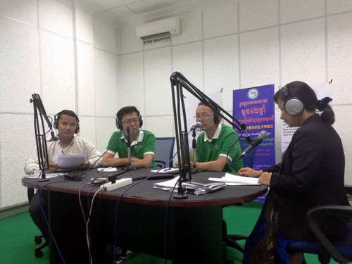 谢莫尼勒院长和夏修龙院长在中柬友好电台现场答疑