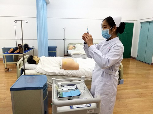 比赛开始,同学们穿戴好工作服,有序进入考场。比赛期间同学们应用自己所学专业理论知识严格操作,动作流畅而专业,展现一名合格护理人员的风采。