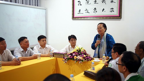 宴会开始前,克罗媞达理事长与江西商会代表进行了座谈,她说,孔子学院成立以来发展很快,规模不断扩大,形成了自己的特色,成为柬埔寨知名的品牌,孔子学院的发展离不开社会各界的支持。7年来,江西商会给予孔子学院极大的支持和帮助,正是由于社会各界的支持孔子学院才有所成就。