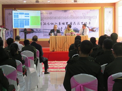研讨会上,克罗媞达院长致辞,她充分肯定了柬埔寨汉语教育所取得的成就,希望通过这次研讨会,能达成共识,推动汉语早日纳入柬埔寨国民教育体系。柬华理事总会副会长罗世兴分别从教材、教学、文化活动以及与中国大学的合作情况等方面介绍了柬埔寨华校的基本情况。西部大学、立群学校、CAMLE国际学校和CIEFA国际学校分别介绍了各自汉语教学情况。柬埔寨参议院、劳工部分别从法律和政策层面介绍了汉语人才培养和汉语纳入柬埔寨国民教育体系应解决的问题。与会代表就汉语纳入柬埔寨国民教育体系的可行性、面临的困难以及实施的途径等方面进行了热烈的讨论和交流。