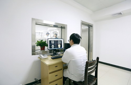 口腔放射科最新引进了我市第一台全国一流、行业领先的普莱梅卡超大视野口腔CT,3D成像可以满足口腔科对全牙区域的需求,它可以自由调节成像体体积及成像位置,能对口腔正畸及种植牙微创手术的诊断与治疗分析提供全面支持。