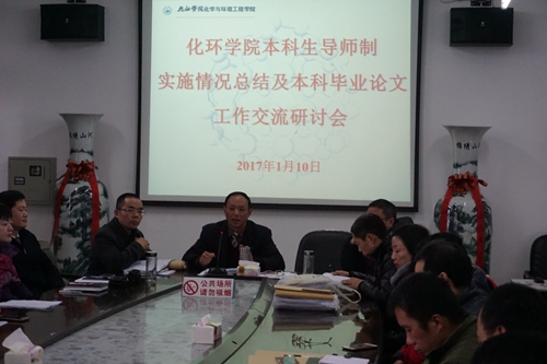 1月10日上午10:00,化环学院在向学楼五楼会议室召开本科生导师制实施情况总结及本科毕业论文工作交流研讨会。化环学院党委书记刘新强、副院长孙德四、副院长曹小华、2015级本科生导师、2013级本科毕业论文(设计)指导教师以及各科室负责人参加交流会。研讨会由副院长曹小华主持。