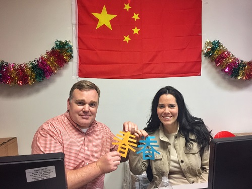当地时间1月26日,萨凡纳州立大学孔子学院的学生们听着喜庆的中文歌,吃着美味的中国点心,欢聚在弥漫着浓浓中国年味的孔院教室,共同庆祝2017年中国春节。中方院长罗其娟向大家介绍了春节的有关习俗,钟佳艺老师带领大家一同用中文演唱了歌曲《新年好》,正式拉开了春节联欢会的帷幕。随后,孔子学院汉语教师带领孔院学生们用各色彩纸剪出了漂亮的“春”字,大家一起迎春接福。在游戏互动环节,大家都按耐不住兴奋激动的心情,各个摩拳擦掌、跃跃欲试,纷纷加入到每项比拼当中。筷子夹彩豆、踢毽子、掂乒乓球等项目都深得外国学生们的喜爱,每位参与游戏的学生都得到了一份独具中国特色的新年礼物。到场学生表示,此次新春联欢会不仅有好歌美食相伴,还进一步了解了中国传统文化和春节年俗,感受到了来自孔院大家庭的团圆年味。