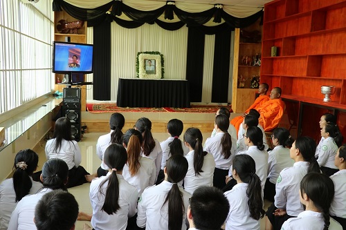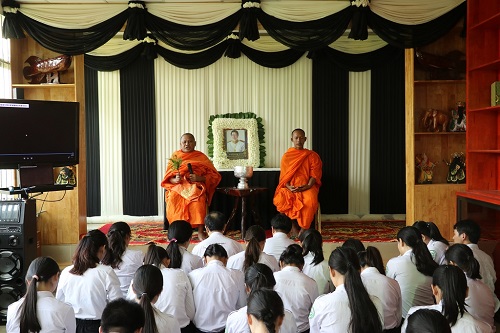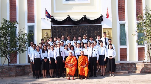 3月15,柬埔寨王国副首相索安(H.E. Sok An)亲王在北京因病逝世,享年66岁。为了悼念索安亲王,3月18日下午,柬埔寨王家研究院孔子学院在本部举行了悼念活动,孔子学院院长谢莫尼勒(H.E.CHEA Munyrith)、中方院长夏修龙和院长助理陈晶雯老师携金边区汉语教师40余人参加了悼念会。
